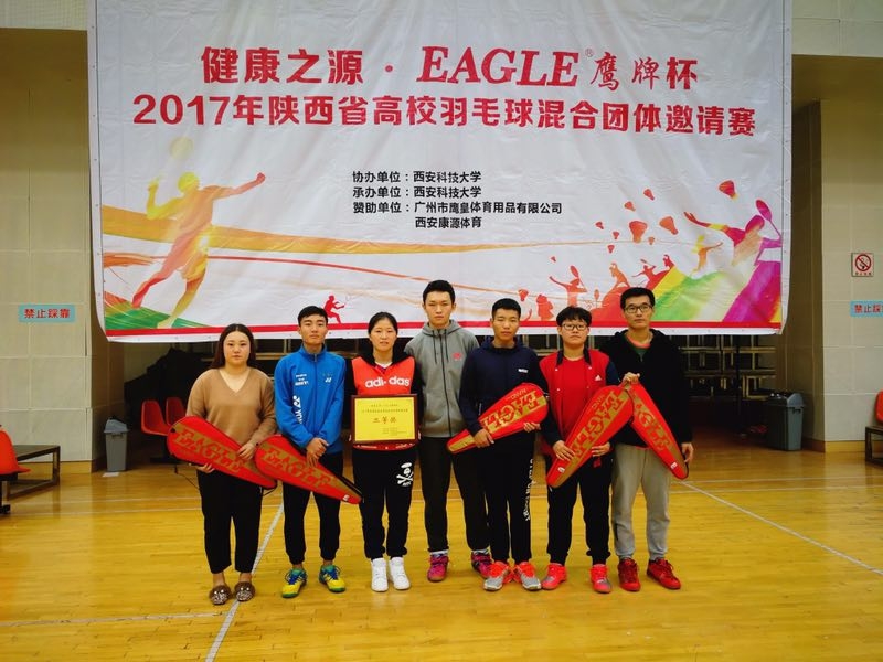 10月14日由师美玉老师带学生羽毛球队参加了2017年陕西省高校羽毛球混合团体邀请赛,本次比赛在西安科技大学临潼校区举行,比赛共邀请16支高校队伍参加,我院为高职唯一参赛队,比赛出场顺序为混双、男双、男单(三场比赛必须有一名教职工),小组赛中我院代表队以3:0胜陕西科技大学与西安石油大学、2:1胜西北政法大学,以小组赛第一进入淘汰赛,淘汰赛中以2:0胜西北政法教工队,半决赛中以2:1遗憾负与东道主西安科技大学一队,最终获得本次邀请赛的二等奖。