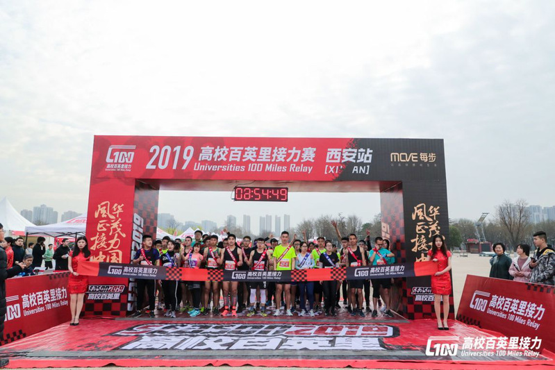 3月16号上午,由共青团中央宣传部,全国学联秘书处,解放日报,每步科技有限公司举办,团中央宣传部学校共青团新媒体,西安曲江马拉松文化体育发展有限公司承办的2019高校百英里接力赛,在西安大明宫御道广场正式鸣枪开赛。来自全国的26所高校,37支队伍,共计525人参与,大家用集体的力量共同完成每人16公里共计160公里的比赛。