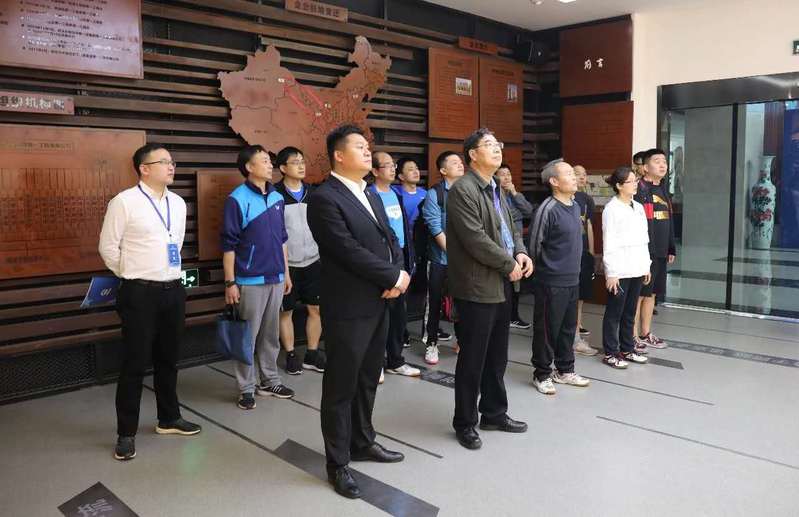比赛间隙,中铁北京工程局一公司总经理、我院优秀校友王朋陪同参赛队员参观了一公司历史文化展览馆。(成凌霄)