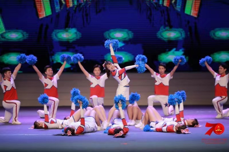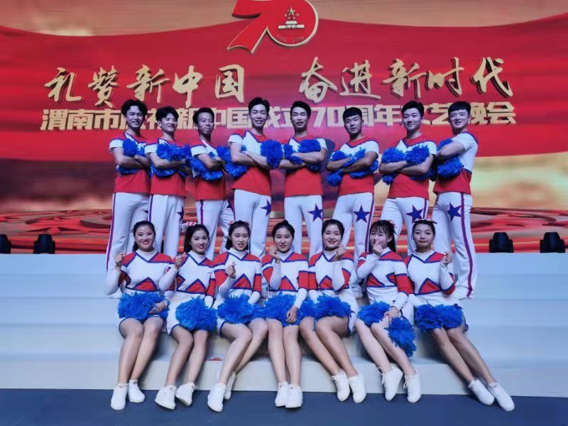 9月27日晚上7点30分,由体育教学部马婉红老师带领学生啦啦操队在渭南市大剧院参加了由市委市政府主办的,市委宣传部、市文化旅游局承办的渭南市庆祝新中国成立70周年文艺晚会,节目节奏感强,展现了当代大学生青春活力的风采,受到了观众的好评。(马婉红)