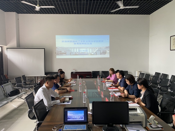 6月18日上午,体育教学部在高新校区文体中心会议室与来访的陕西国防工业职业技术学院军事体育部王茂利部长一行6人进行座谈。