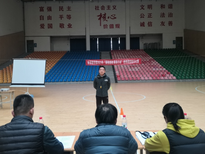 为提高教师教学水平,提升课堂教学质量,11月3日下午,体育教学部2021年“课堂思政 陕铁行动”教师课堂教学能力比赛在高新校区文体中心举行。8位老师依次进行说课和授课的展示。张骏主任对参赛教师的努力和取得的成绩作出充分肯定,他指出借助教师教学能力比赛,可以全面提高教师队伍整体素质和水平。教学能力比赛为教师们搭建集中研讨、交流互动、共同进步的平台,达到以赛促教、以赛促学、以赛促研、以赛促练之目的。