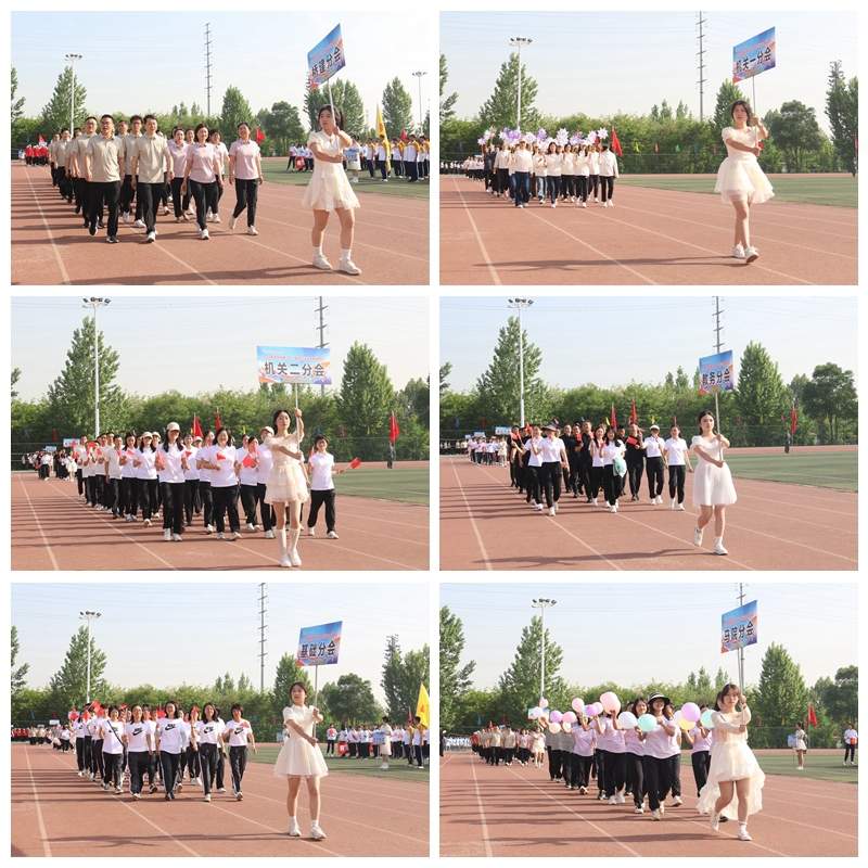 入场式中,伴着激昂的旋律,护旗队、红旗队、各学院方阵、各分会教职工方阵,队列整齐、口号嘹亮、精神抖擞地进入会场,充分展现了学校师生拼搏奋发、昂扬向上的精神风貌。