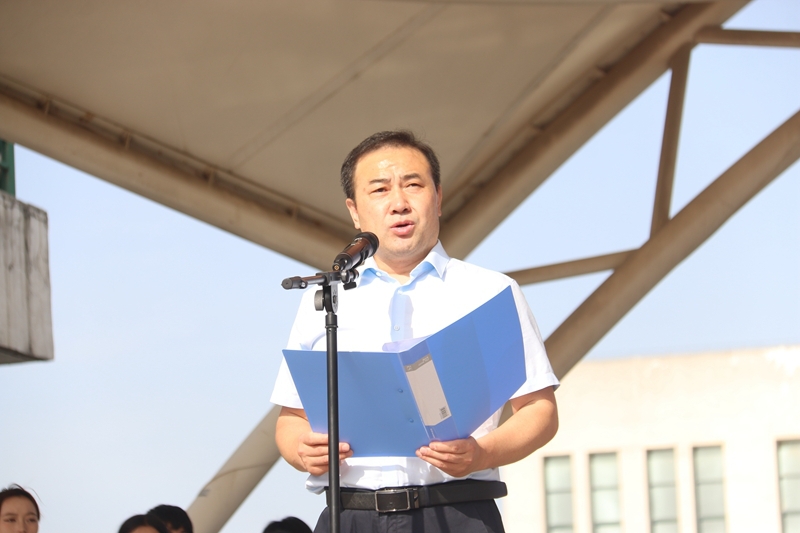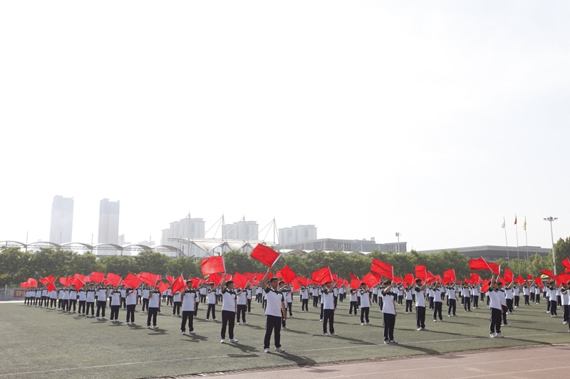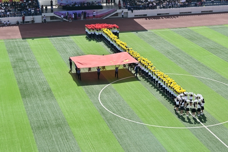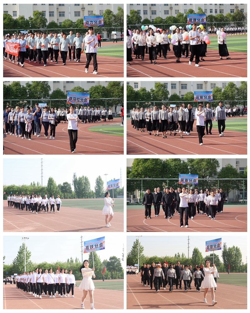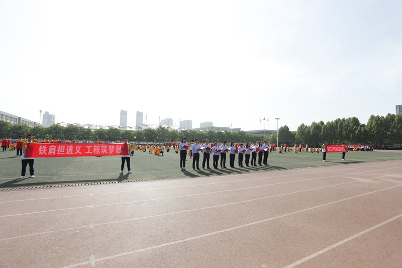 入场式中,伴着激昂的旋律,护旗队、红旗队、各学院方阵、各分会教职工方阵,队列整齐、口号嘹亮、精神抖擞地进入会场,充分展现了学校师生拼搏奋发、昂扬向上的精神风貌。