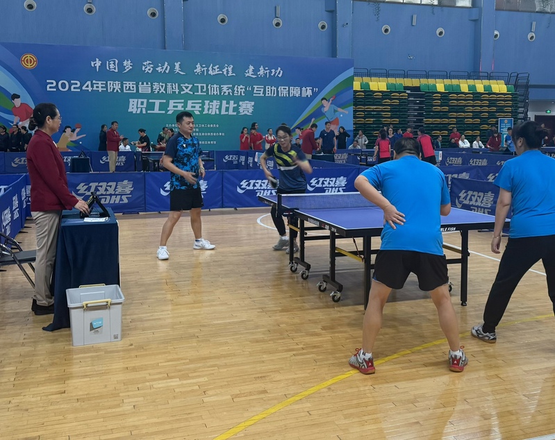 2024年陕西省教科文卫体系统职工乒乓球比赛于11月1-3日在西安外事学院举行。学校工会副主席王宏礼、体育部部长任文带队参赛。