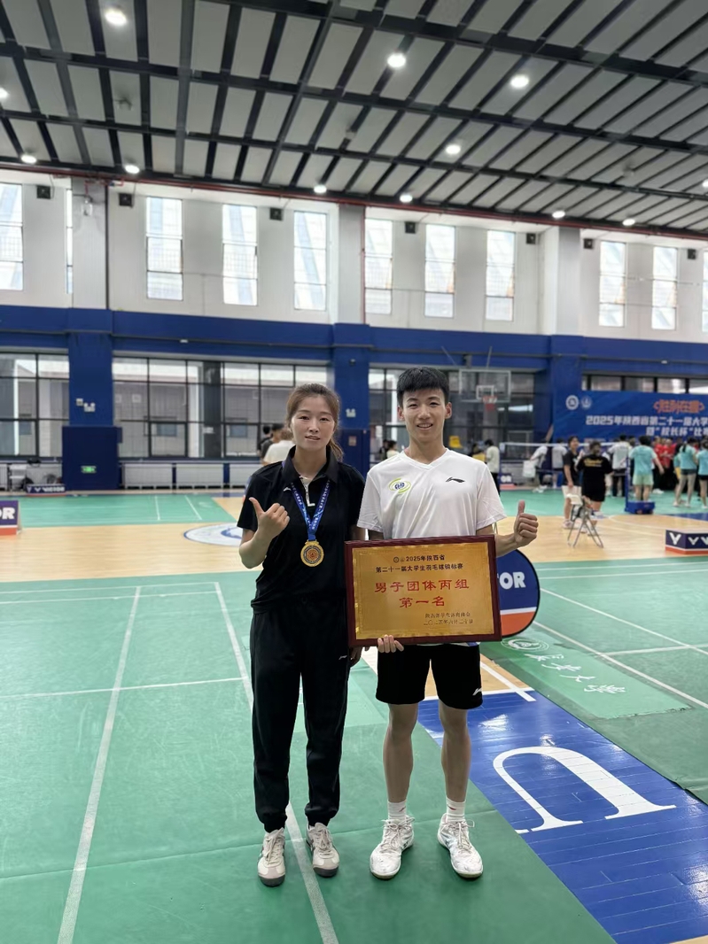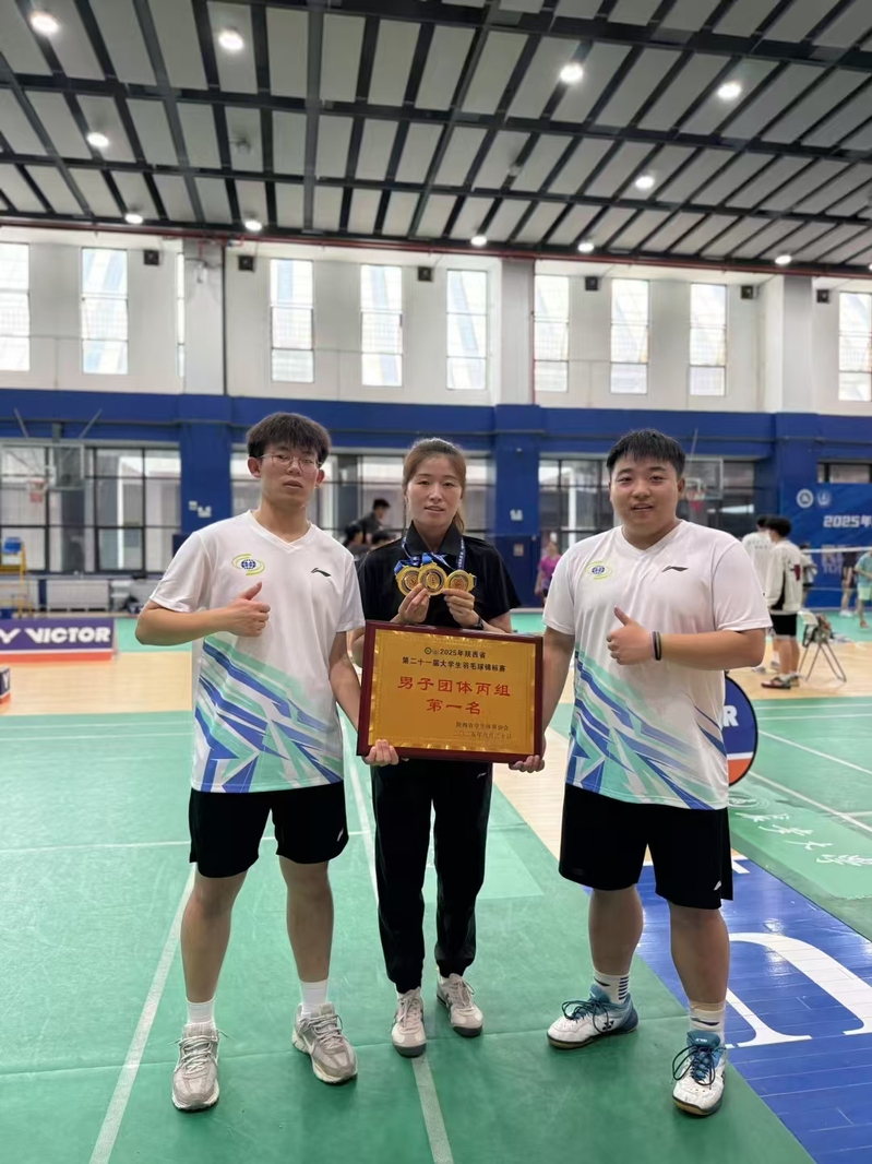 6月20日,由陕西省学生体协主办的2025年陕西省第二十一届大学生羽毛球锦标赛,在长安大学落下帷幕。我校羽毛球训练队获丙组男子团体冠军,男子单打、双打冠军。领队体育部部长任文、教练员师美玉带队参赛。